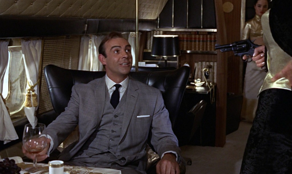 Plus généralement, les repères des méchants sont exactement dans le style des beaux décors des années 1960 créés par Ken Adams : des espaces fermés, mais luxueusement aménagés, avec des effets de reliefs (l’ère Connery en est remplie), des sous-marins se détachant des bateaux (bonjour Opération Tonnerre !) et des appartements de luxe aménagés dans lesdits sous marins. Et bien entendu, des cartes du monde gigantesques posées sur les murs pour marquer la mégalomanie des personnages.