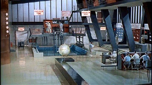 Plongeons nous ensuite dans le décors. Il faut d’abord citer, même si ce n’est pas une référence bondienne, la salle de crise du département américain, qui est la copie conforme de celle réalisée par Ken Adams (le décorateur des premiers James Bond), pour Docteur Folamour de Stanley Kubrick.