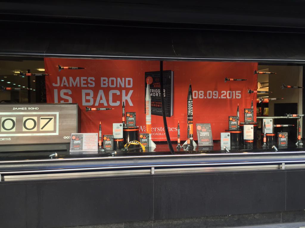 Trigger Mortis: Unlocking Bond sera exclusivement ouvert aux détenteurs de billets permettant d’assister au lancement du roman, avec Anthony Horowitz, le lundi 7 septembre. Les billets sont en vente sur le site web de Waterstones au prix de 27 euros (le prix du billet comprend également un exemplaire de l’édition exclusive Waterstones du roman, visible ci-contre). L’évènement sera ouvert au grand public à partir du mardi 8 septembre jusqu’au dimanche 13. Parcourir l’espace années 1950 sera gratuit, mais pour participer au défi Trigger Mortis, une copie de l’ouvrage devra être acheté.